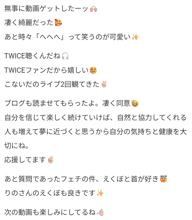 前回ファンクラブで初めて公開した動画でも、たくさんの嬉しいコメントをもらえました💞