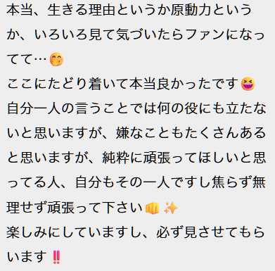 何より私のことを生きる理由・原動力にしてくれてることが嬉しかったです☺️✨